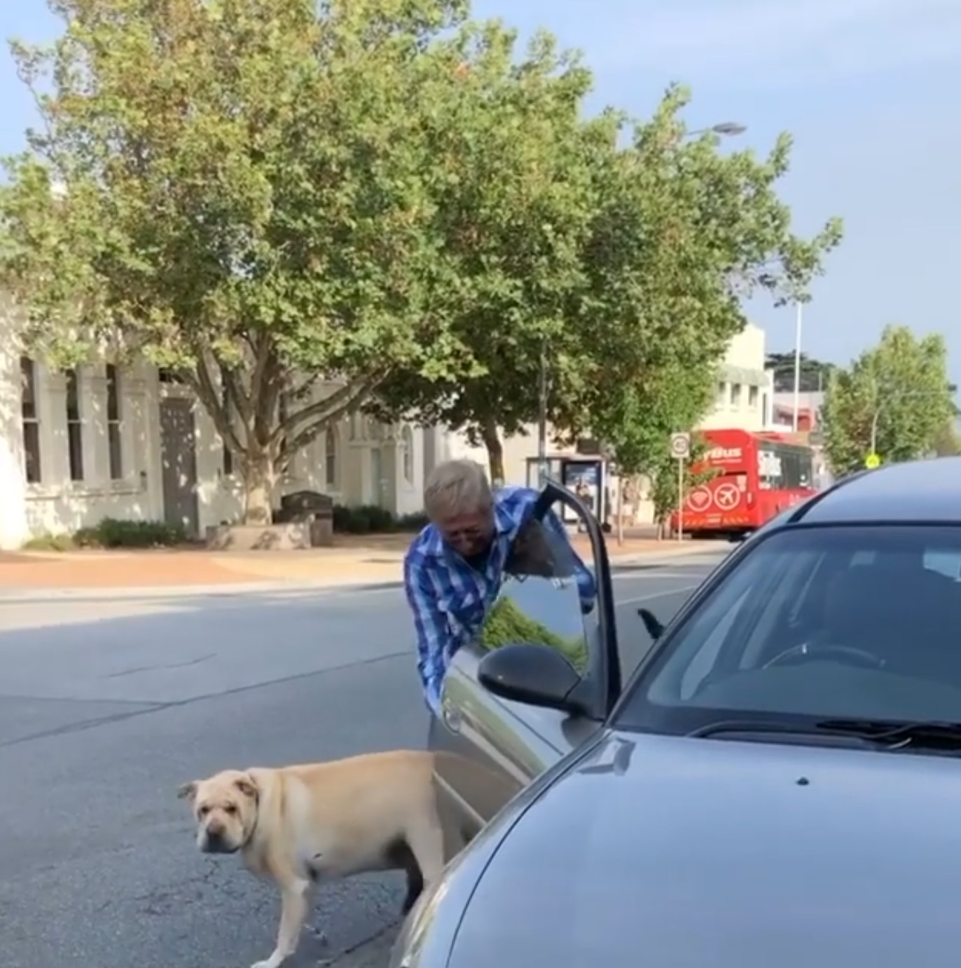 น้องหมาขี้โมโหยังคงทำหน้าเหี่ยวนั่งกระแทกแตรอยู่อย่างนั้น...ขณะที่สายตาก็กำลังสอดส่องมองผ่านกระจกรถออกมา คล้ายกับกำลังมองหาใครบางคนอยู่ กระทั่งมีคุณลุงสวมเสื้อลายสีฟ้าแขนยาวเดินดุ่มๆ ด้วยอาการเร่งรีบที่กำลังมุ่งหน้ามาที่รถคันดังกล่าวจากอีกฝากของถนน สตีลลีสันนิษฐานว่า คุณลุงคือเจ้านายของน้องหมาแน่ๆ