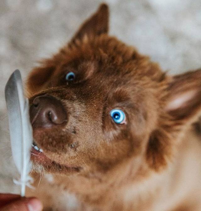 “Quoi” น้องหมาไซบีเรียนฮัสกี้ ขนสีน้ำตาล นัยน์ตาสีฟ้า สุดหายาก