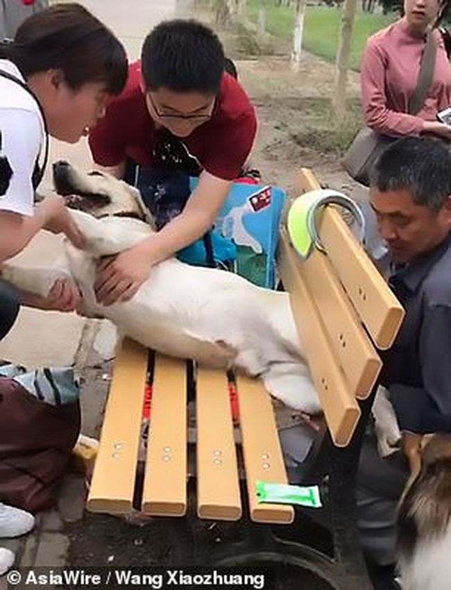 โชคดีคนรักน้องหมาที่ยืนอยู่ในบริเวณนั้นมีน้ำใจ พวกเขาไม่รีรอที่จะมอบความช่วยเหลือให้กับจ้วงจ้วง