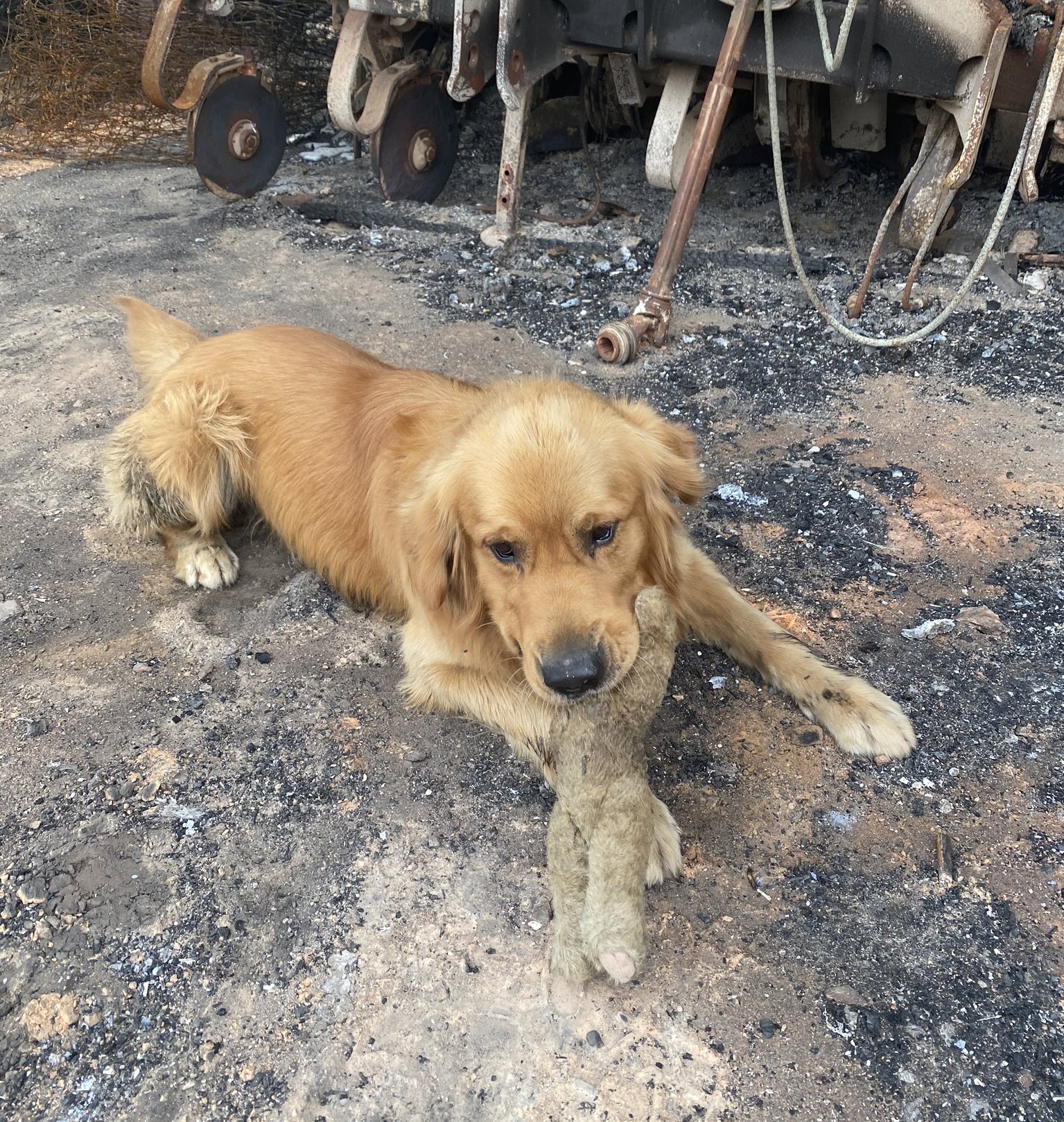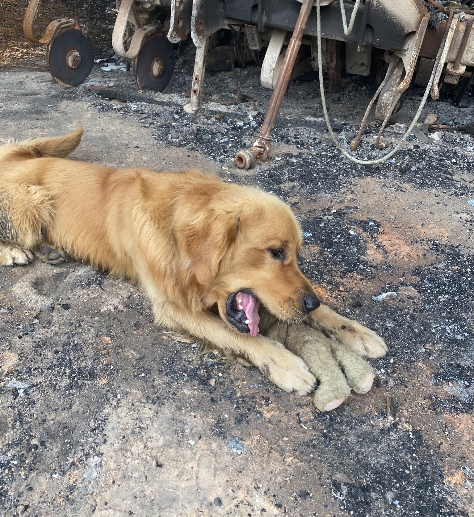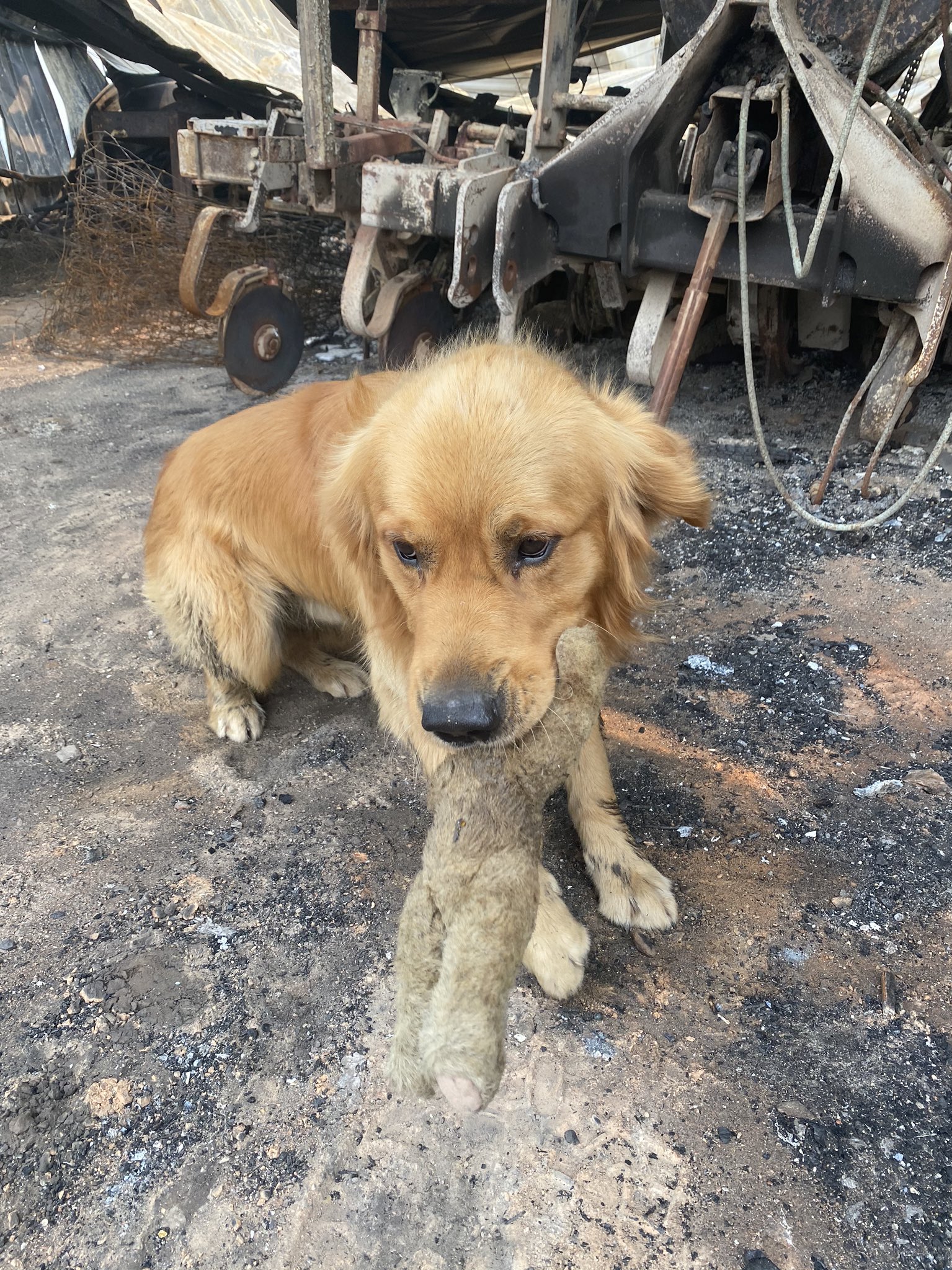 ของสิ่งนั้นก็คือ ตุ๊กตาตัวโปรดของ “โอเจ” (OJ) น้องหมาโกลเด้น รีทรีฟเวอร์ที่ครอบครัวซาเกมเลี้ยงเอาไว้ ถึงแม้ว่าตุ๊กตาจะดูสกปรกมอมแมมและมีคราบสีดำจากเถ้าถ่านเลอะเปรอะไปซะหน่อย แต่โดยรวมแล้วตุ๊กตาตัวโปดของโอเจก็ยังคงมีสภาพที่ดีอยู่มากอย่างไม่น่าเชื่อ ซึ่งเป็นไปได้มากว่าก่อนหน้าที่ไฟป่าจะลุกลามมาถึงโอเจรับรู้ถึงเรื่องร้ายและพาเพื่อนตุ๊กตาของเขาไปหลบในพื้นที่ที่ปลอดภัยไว้ได้ทันเวลา