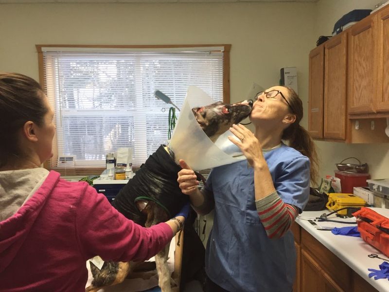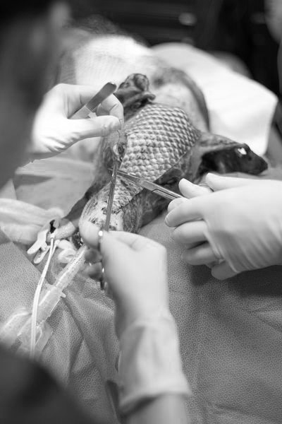 “เมื่อเขามาถึง เราก็จัดการเปลี่ยนผ้าพันแผลให้เขาทันที เนื่องจากเราต้องการสถานที่ที่สะอาดและปลอดเชื้อจึงต้องทำในโรงพยาบาลสัตว์ของฉัน”
