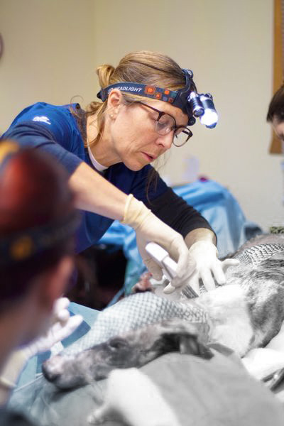 ดร.เจมี่ ขณะกำลังรักษาสัตว์ที่ถูกไฟไหม้บริเวณขา