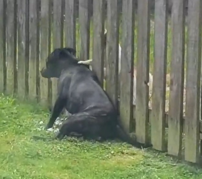 “วันนั้นฉันนั่งอยู่บนโซฟาแล้วมองออกไปที่ชานบ้าน ฉันพบเข้ากับภาพที่น่ารักๆ ของทั้งคู่ ฉันค่อนข้างรู้สึกประหลาดใจเล็กน้อยเมื่อได้เห็นร็อคโค่ยื่นอุ้งเท้าเล็กๆ ของเขาผ่านรั้วเข้ามานวดหลังให้กับโบ ฉันเดินไปดูใกล้ๆ ฉันคิดว่าพวกเขาเห็นฉันนะ แต่ทว่าพวกเขาก็ไม่ได้สนใจและยังคงทำกิจกรรมนั้นต่อไป”