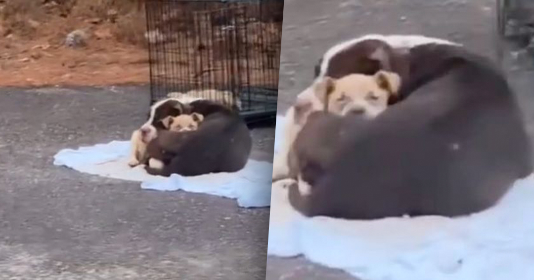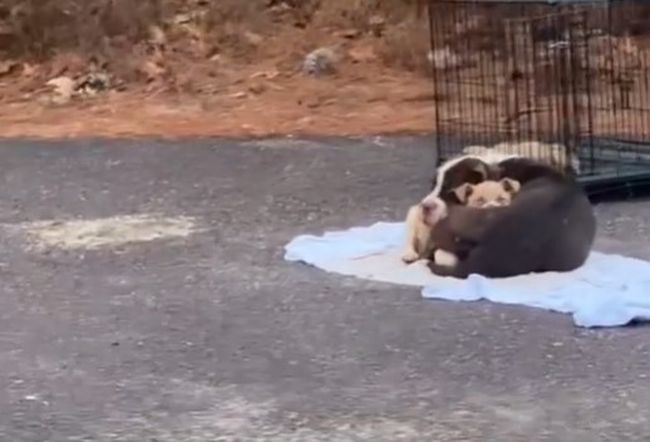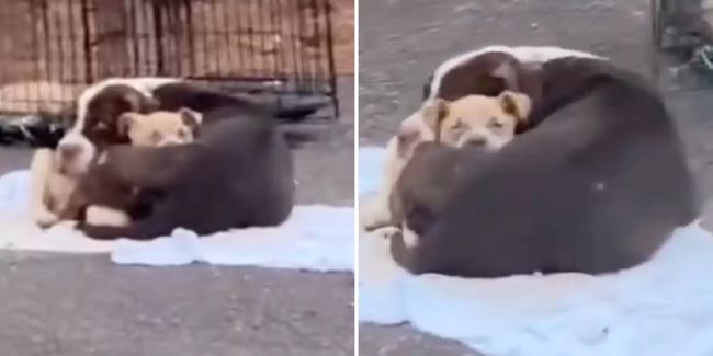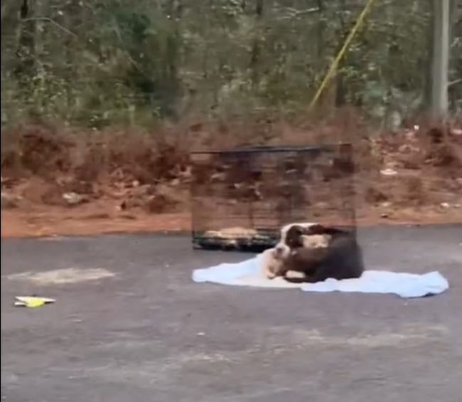 น้องหมาสองแม่ลูกมีผ้าขนหนูสีขาวผืนบางรองนอนอยู่บนพื้นถนนที่เย็นเฉียบโดยไร้สิ่งกำบัง น้ำและอาหารท่ามกลางสภาพอากาศที่หนาวเย็น มีเพียงไออุ่นจากอ้อมอกของกันและกันเท่านั้นที่ช่วยให้รู้สึกคลายหนาวได้บ้าง แม่หมาดูเศร้ามาก เธอพยายามชะเง้อมองดูรถยนต์ทุกคันที่แล่นผ่านบนถนนราวกำลังเฝ้ารอรถที่คุ้นเคยของครอบครัวกลับมารับ