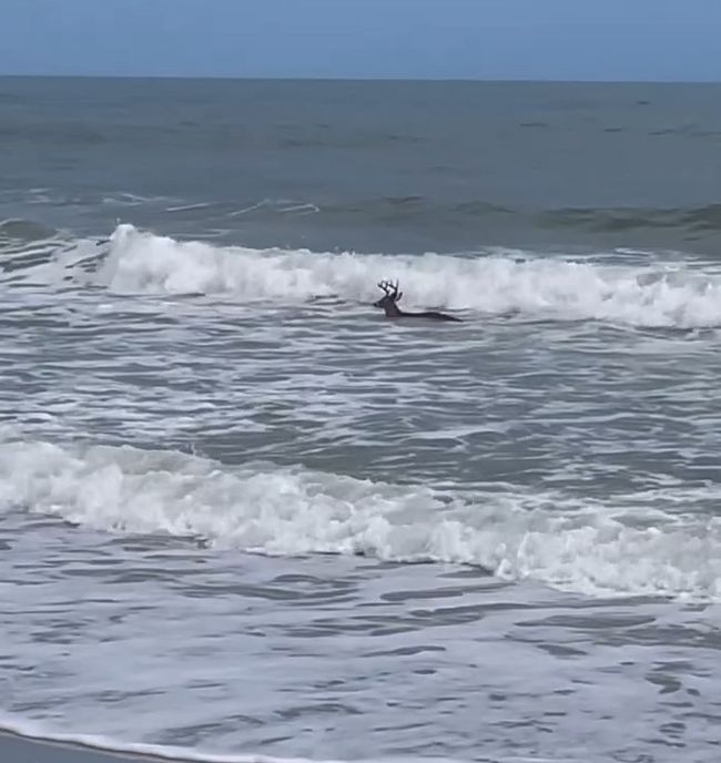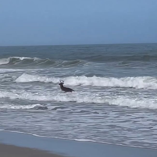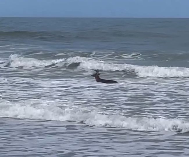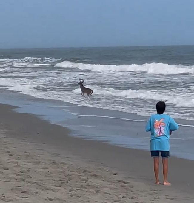 “มีผู้คนจำนวนมากบนชายหาด ตอนแรกผมคิดว่ากวางหนุ่มคงเดินลงทะเลเพียงเพราะต้องการเว้นระยะหนีให้ห่างจากผู้คนเท่านั้น แต่เจ้าหน้าที่ตำรวจที่กำลังเดินตรวจตราในบริเวณนั้นเดินเข้ามาบอกผมให้เข้าใจว่า นี่ไม่ใช่เรื่องแปลกอะไร พวกเขามักจะพบเห็นกวางป่าเดินลงไปเล่นน้ำทะเลบ่อยครั้ง หลังจากการสนทนาจบลง ผมก็ยังหันไปเจอกวางหนุ่มสนุกกับการโต้คลื่นอยู่บริเวณเดิม”
