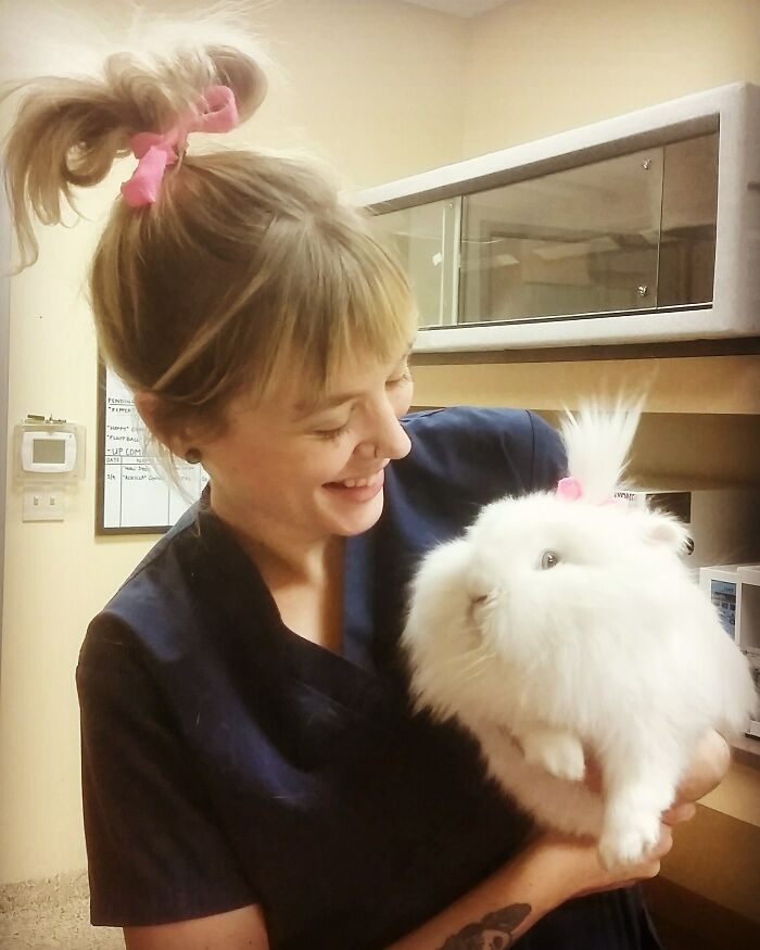 น่าทึ่งมากดวงตาสองสี! แถมข้างเดียวกันด้วย ส่วนน้องเหมียวก็ดูนิ่งมาก แม้กำลังมีอุ้งมือน้อย ๆ โอบรอบคออยู่