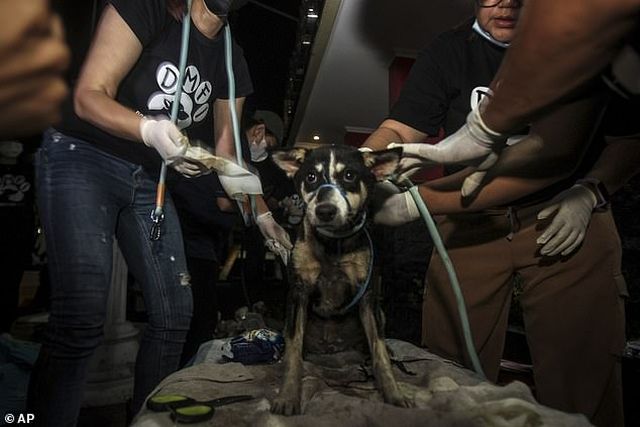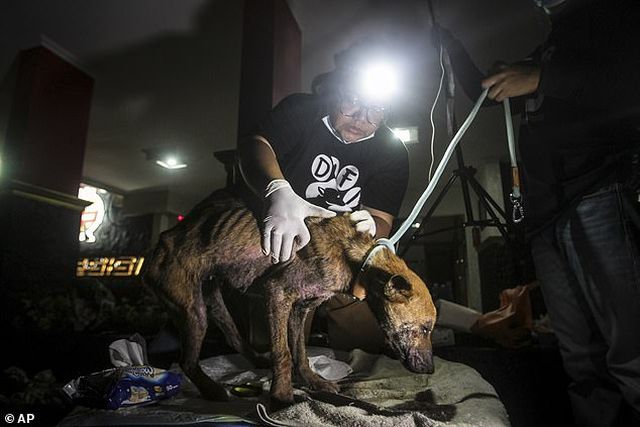 น้องหมาผู้น่าสงสารต่างตกอยู่ในสภาพอ่อนแรง หลายตัวผอมแห้งคล้ายอดอาหารมานานและบางตัวก็โชคร้ายกว่ามากเมื่อร่างกายบอบซ้ำเกินกว่าจะอดทนรอความช่วยเหลือได้สิ้นใจตายไปก่อนในสภาพที่น่าเวทนา