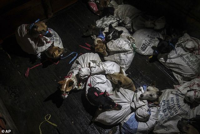 เจ้าหน้าที่ Dog Meat Free Indonesia เผยว่าน้องหมาส่วนใหญ่ล้วนแล้วถูกขโมยมาจากเจ้าของ บางตัวยังสวมปลอกคออยู่ด้วยซ้ำ หลังจากพวกเขาถูกขโมยจะถูกมัดด้วยเชือกแน่น ก่อนจะถูกโยนขึ้นไปกองรวมกันไว้ที่ท้ายรถเพื่อส่งไปโรงเชือด