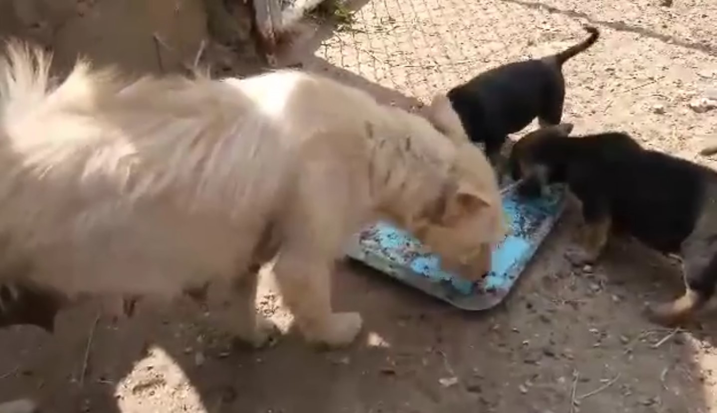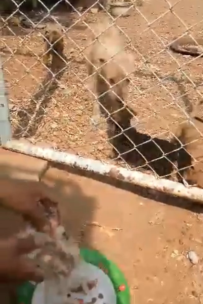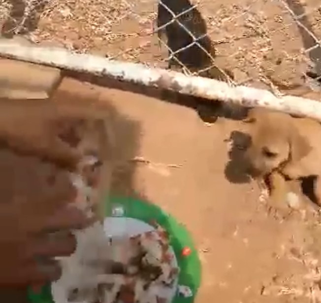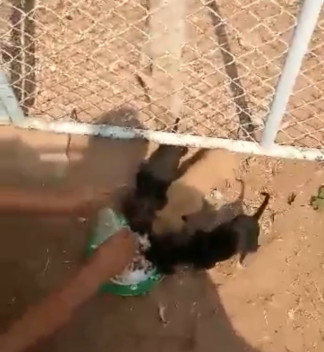 นอกจากข้อความดังกล่าวแล้วบนโพสต์แล้วยังมีคลิปวิดีโอและภาพถ่ายของแม่หมาและลูกๆ ของเธอทั้ง 6 ตัวในสภาพมอมแมมด้วย คลิปวิดีโอดังกล่าวกำลังแสดงให้เห็นช่วงเวลาขณะที่ลูกหมาตัวน้อยที่มีขนสีน้ำตาลและสีดำกำลังดีใจกระดิกหางพยายามมุดตัวผ่านช่องแคบๆ ลอดประตูรั้วเหล็กออกมากินอาหารที่คุณมิลค์กำลังเทใส่จานให้ ลูกหมากินกันมูมมามด้วยความหิวโหย...