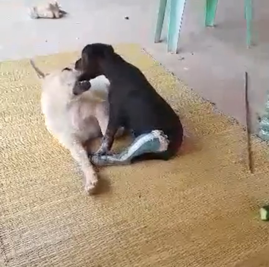 “ช่วง 4 โมงเย็น หมาดันวิ่งออกไปโดน รถ ช น ขา ซ้าย หั ก จนผิดรูป คาดว่าโดนล้อรถ เหยี ย บ ทั บ ตอนนั้นผมอยู่ในร้าน ได้ยินเสียงหมาร้องก็รีบวิ่งออกมาดูรถที่ชน แต่เขาขับหนีไปก่อนผมไม่เห็นเลยว่าใครชน ช่วงเวลานั้นดูแต่หมาอย่างเดียวครับ จากนั้นผมก็รีบพาไปหาหมอ”