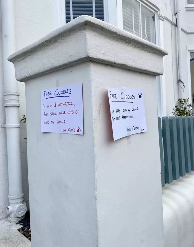 “กอดฟรีจ้า ถึงฉันจะแก่แถมยังป่วยเป็นโรคข้ออักเสบ แต่ฉันมีความรักมากมายพร้อมแบ่งปันนะ ด้วยรักจากคอนนี่”