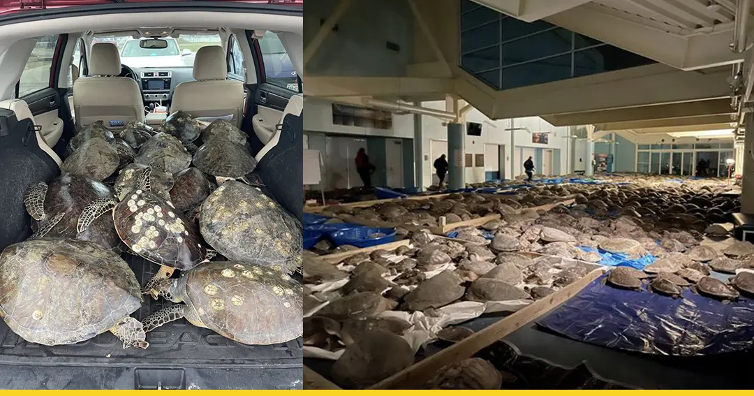 อย่างที่ทราบเต่าเป็นสัตว์เลือดเย็น พวกเขาจึงไม่สามารถควบคุมอุณหภูมิร่างกายของตัวเองได้ ต้องอาศัยความร้อนจากแสงแดดเพื่อช่วยปรับอุณหภูมิสร้างสมดุลภายในร่างกาย ดังนั้นเมื่อมีพายุหิมะตกหนักจนสภาพอากาศหนาวเย็นลงถึง -18 องศาเซลเซียสอย่างผิดปกติ ต่ำสุดเป็นประวัติศาสตร์ในรอบ 30 ปี เต่าทะเลหลายพันตัวจึงเป็นอัมพาตแข็งทื่อขยับตัวไม่ได้ชั่วคราว นั่นทำให้พวกเขาไม่สามารถว่ายน้ำและเสี่ยงที่จะจมน้ำตาย