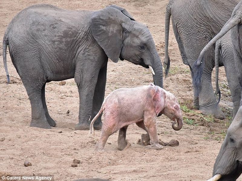 ลูกช้างสีชมพู หรือ ช้างผิวเผือก แอฟฟริกาพบครั้งล่าสุดเมื่อปี พ.ศ. 2559 ที่ผ่านมา ภายในบริเวณอุทยานแห่งชาติครูเกอร์ (Greater Kruger National park) ประเทศแอฟฟริกาใต้ โดยลูกช้างเพศเมียตัวดังกล่าวมีผิวสีชมพูทั่วทั้งตัว เธอโดดเด่นท่ามกลางช้างนับสิบตัว โชคดีที่โขลงช้างให้การยอมรับในตัวเธอและพยายามปกป้องดูแลเธอจนเติบโตมาเป็นช้างสาวที่สวยและสง่างามในปัจจุบัน